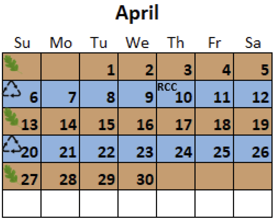 Recycling and yard waste are picked up bi-weekly. Trash is picked up weekly. Some routes use a Split Body Truck to pick up both your recycling and trash. The truck has separate compartments to separate material. This saves fuel, reduces emissions and wear and tear on the roads.